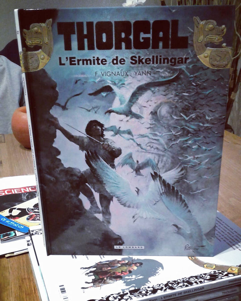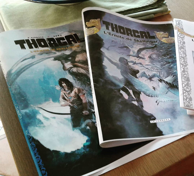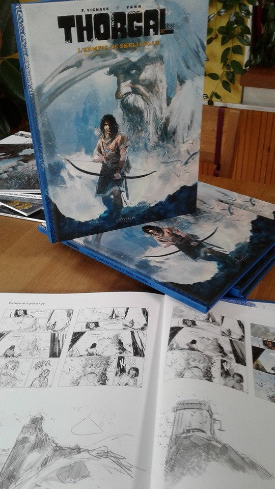 Eh oui, « L’ermite de Skellingar » sera disponible en plusieurs versions. Dès vendredi, vous pourrez vous procurer l’édition normale du Lombard, illustrée en couverture par Grzegorz Rosinski. L’album est imprimé, il est tout chaud, il vous attend.