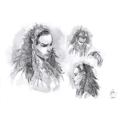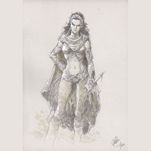 Voici, pour commencer, plusieurs belles images réalisées par Giulio de Vita. Le dessinateur se plaît à réaliser ces portraits de personnages. Une sorte de récréation pour son crayon, mais aussi un entraînement pour un auteur sans cesse avide de progresser.