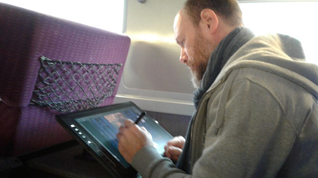Très sollicité mais toujours studieux, Fred travaille partout, même pendant un long trajet en train.
