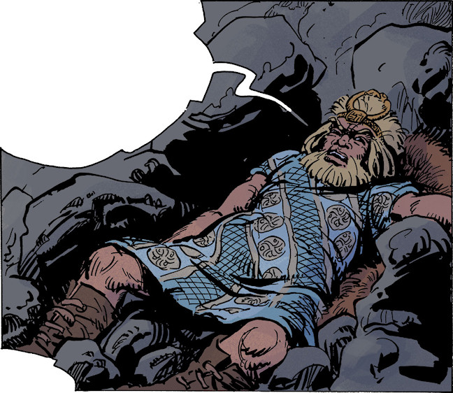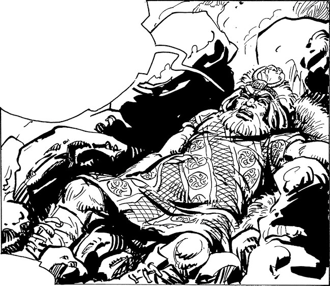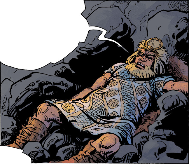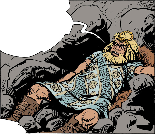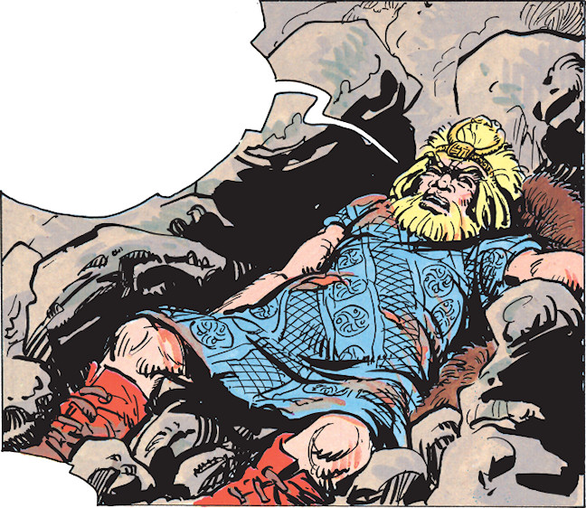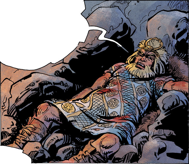 L’autre choix fort a été de supprimer un élément du fond que Rosinski avait dessiné à l’aide de couleurs. Dans la case originelle, Gandalf est placé au cœur d’un groupe de Vikings modélisé par des ombres. Dans la nouvelle version, il est seul dans sa case et une pluie d’étincelles semble émerger de lui. Le coloriste a ainsi cherché à renforcer le dynamisme de la case et l’agressivité du personnage.