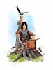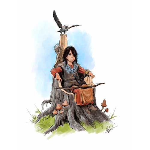 Voici une variante avec un fond plus ouvert et un avant-plan plus touffu. La lumière vient de l’arrière, le personnage se découpe nettement.