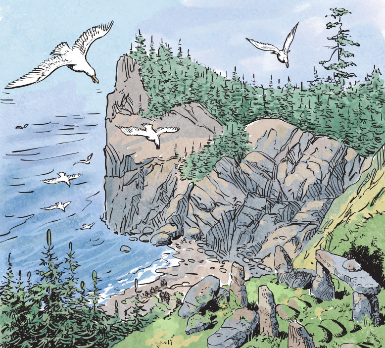 Les oiseaux donnent de la profondeur à l’image, et c’est tout juste si on s’aperçoit que les survivants sont réunis dans la crique et ont commencé à remonter vers l’intérieur de l’île.