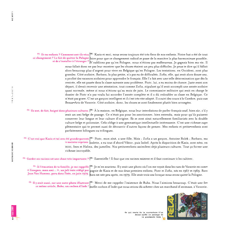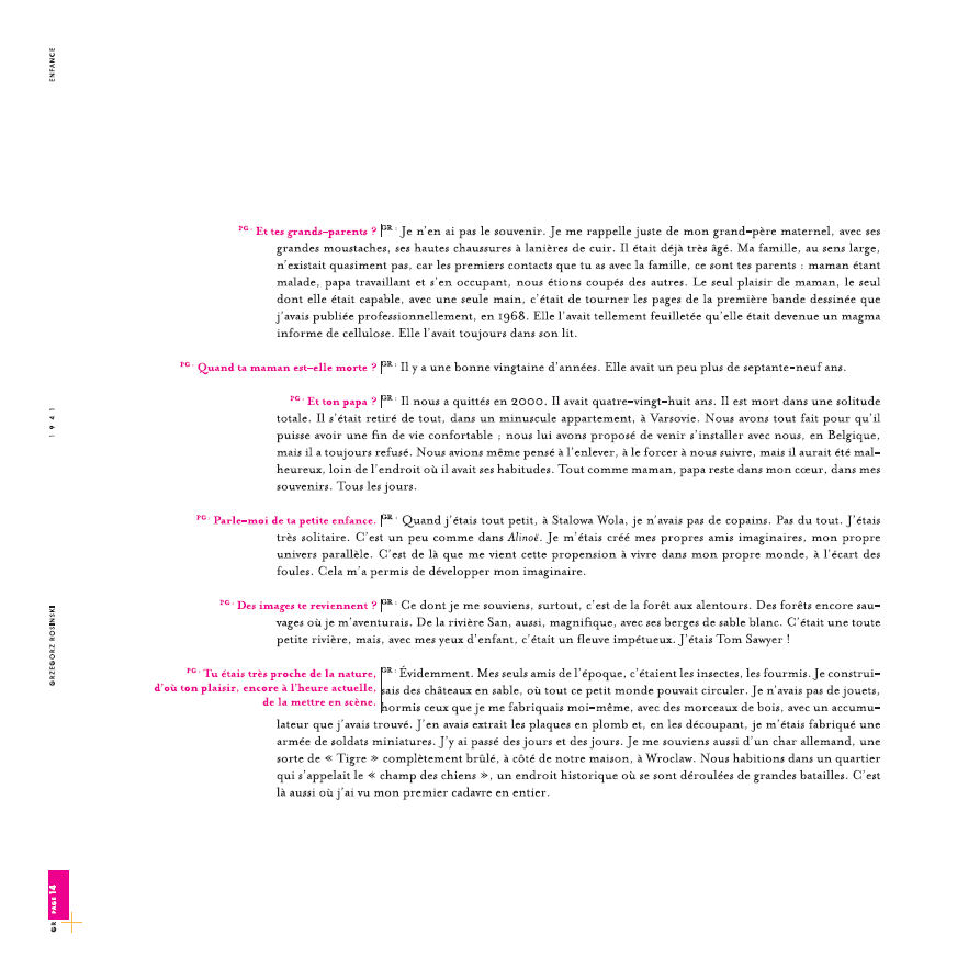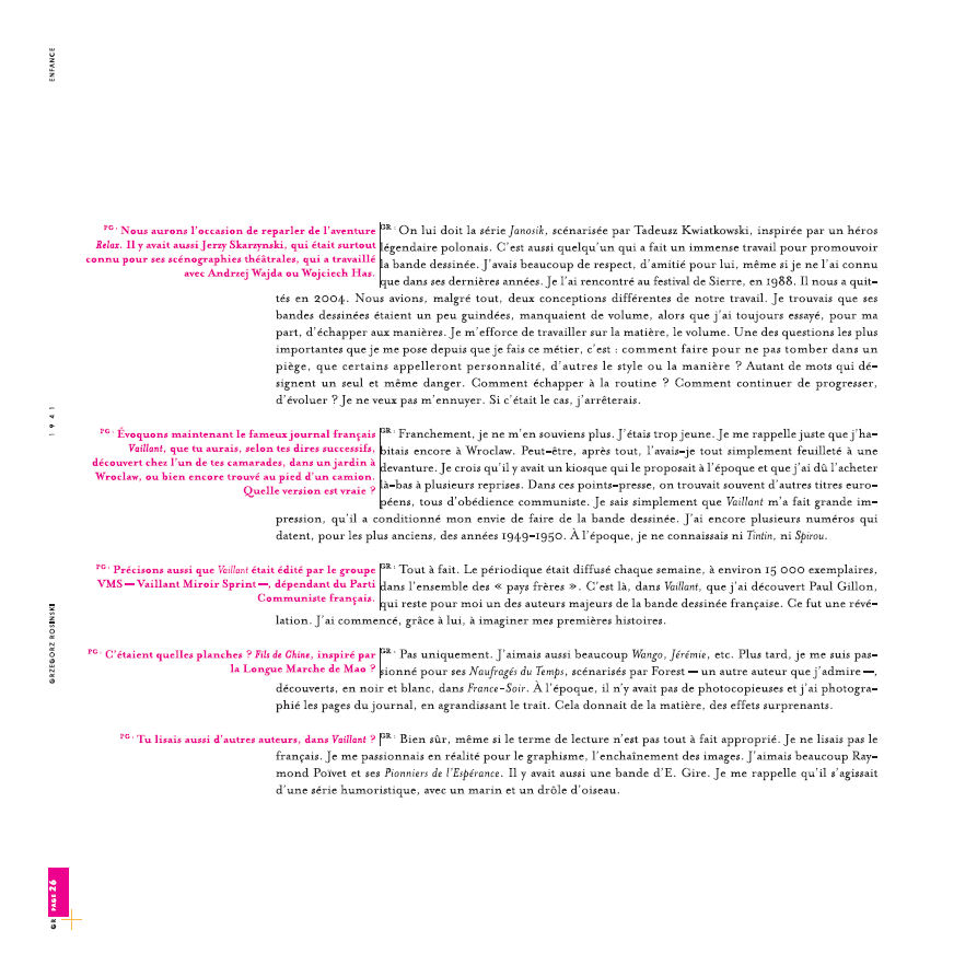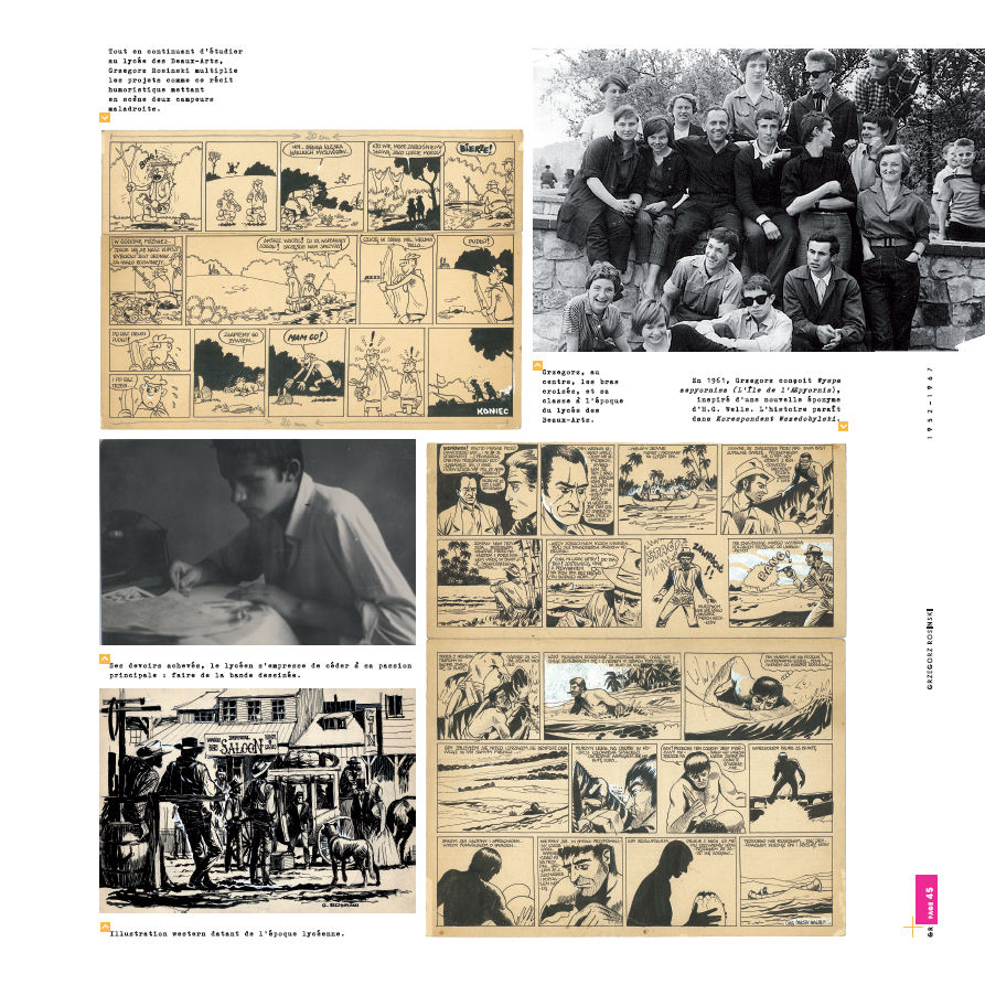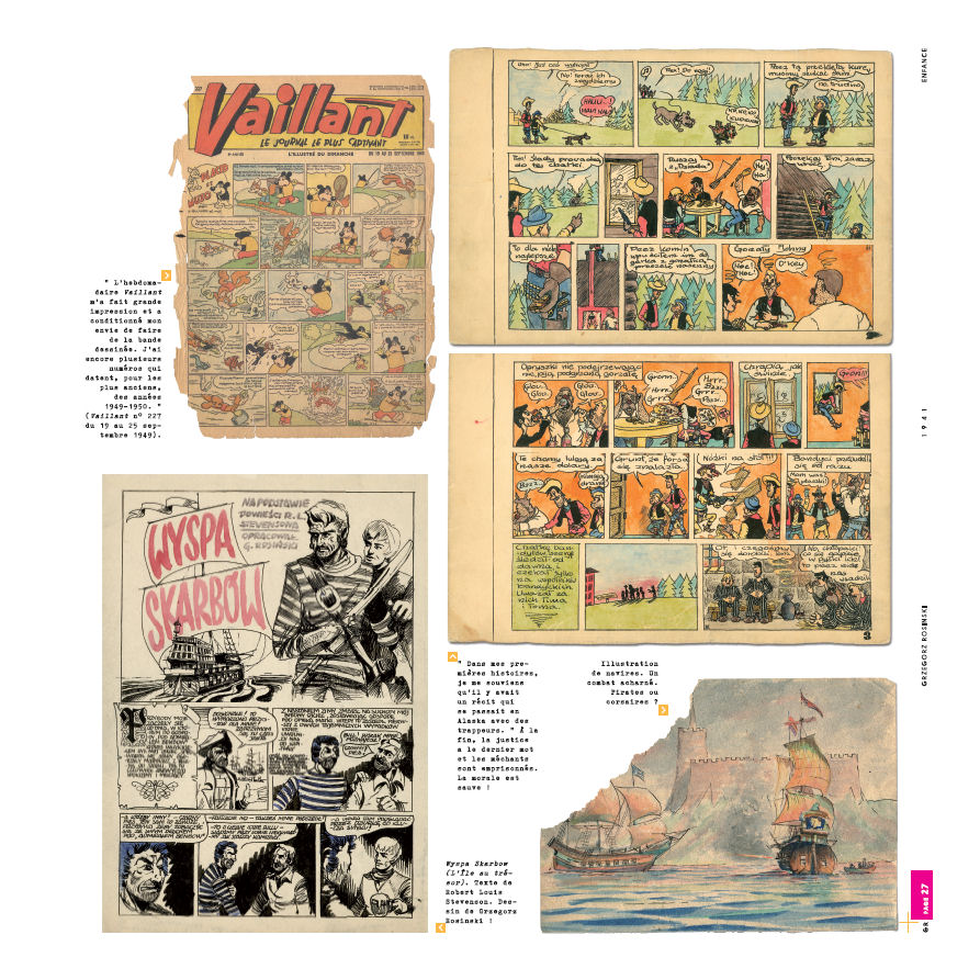 Le jeune Grzegorz découvre la bande dessinée, dans un journal francophone diffusé à l’est. Un premier contact déterminant, et déjà de premiers choix, puisque le petit garçon semble davantage attiré par le trait et la mise en image que par l’histoire racontée, dans une langue qu’il ne connaît pas.