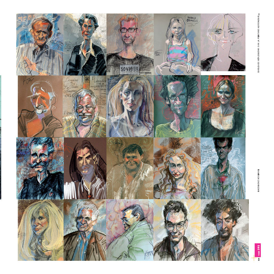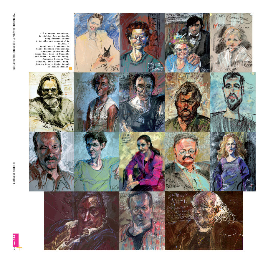 Nous refermons le livre avec ces deux dernières pages, qui exposent des portraits réalisés par l’auteur, un jeu auquel il convie certains de ses invités. Il n’y a pas le mien, malheureusement. Peut-être dans la monographie – tome 2 ?