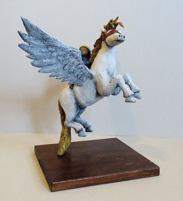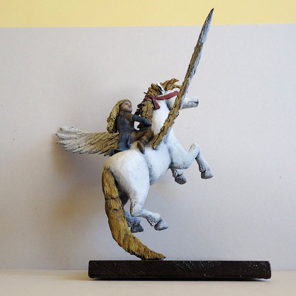 Du même auteur, cette statuette représente la petite Aaricia chevauchant le dieu Vigrid, changé en cheval volant.