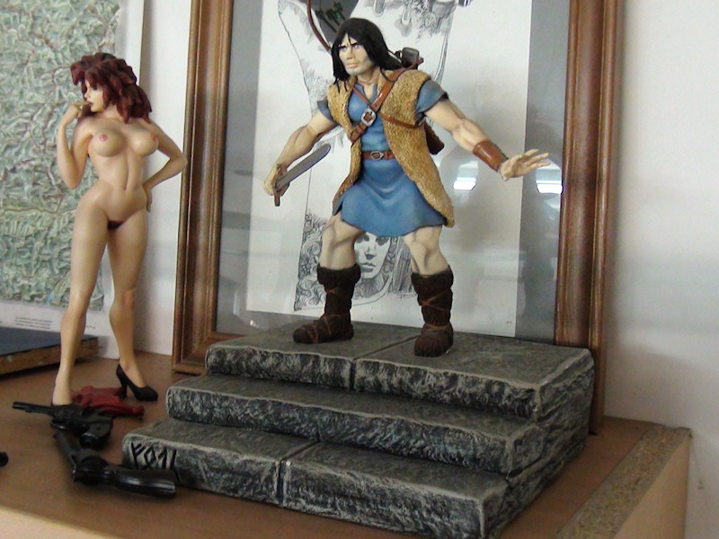 Voici également des réalisations de fans, certainement parmi d’autres. La première a été offerte à Grzegorz Rosinski, on peut la voir dans son atelier. Thorgal y est représenté l’épée à la main, prêt au combat, en haut de marches de pierre. La deuxième, un buste, a été vue sur Internet il y a quelques années.