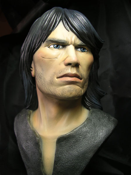 Voici un buste de 15 cm présenté en 2008 par son sculpteur sur différents sites internet. Il faut noter que ce buste très réussi, tout comme les autres statuettes et dioramas présentés ici, n’est pas un produit officiel (photos (c) du sculpteur).
