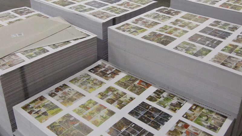 Les planches sont imprimées sur des feuilles de très grand format, on peut ainsi imprimer 16 planches sur une seule feuille, 32 en recto-verso. Deux feuilles suffisent pour un album complet, et même parfois une seule feuille avec les 48 planches !