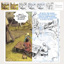 Ces nouvelles cases interactives permettent d'apprécier le travail du dessinateur-coloriste, des premières esquisses aux cases terminées. Suivons Thorgal, l'arc à la main !