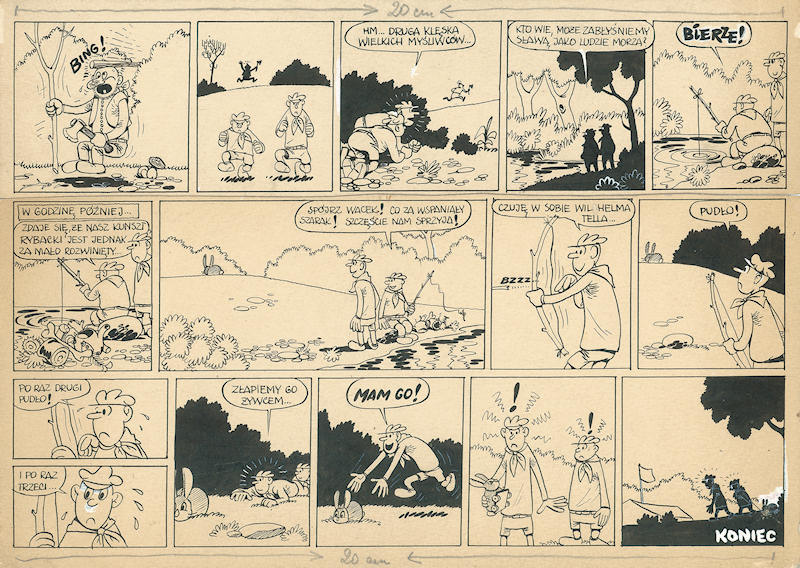 Il en sort diplômé et va contribuer au développement naissant de la BD en Pologne. Il dessine une vingtaine d’albums pour les éditions polonaises « Sport et Tourisme », essentiellement les enquêtes d’un détective et les aventures d’un pilote d’hélicoptère. Il réalise ensuite des légendes polonaises et des récits de science-fiction pour la revue « Relax » dont il prend la direction artistique.