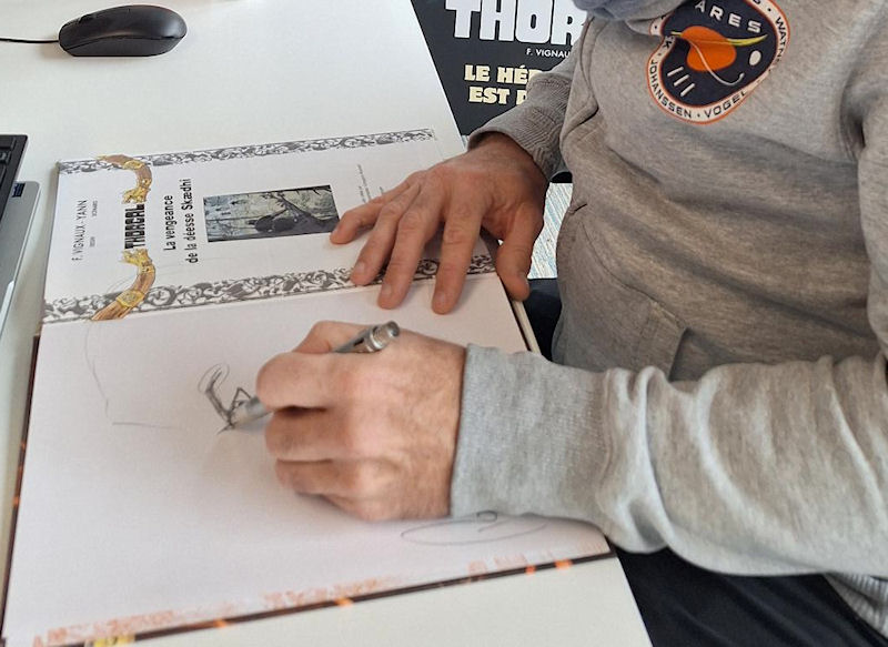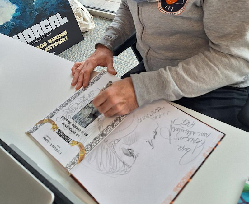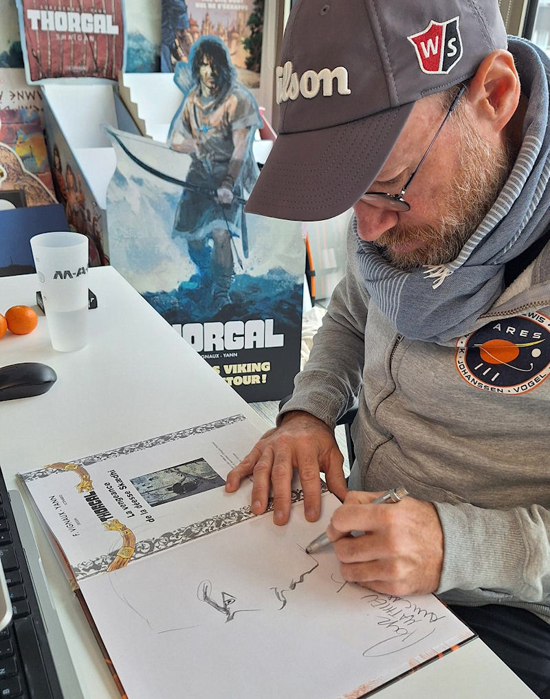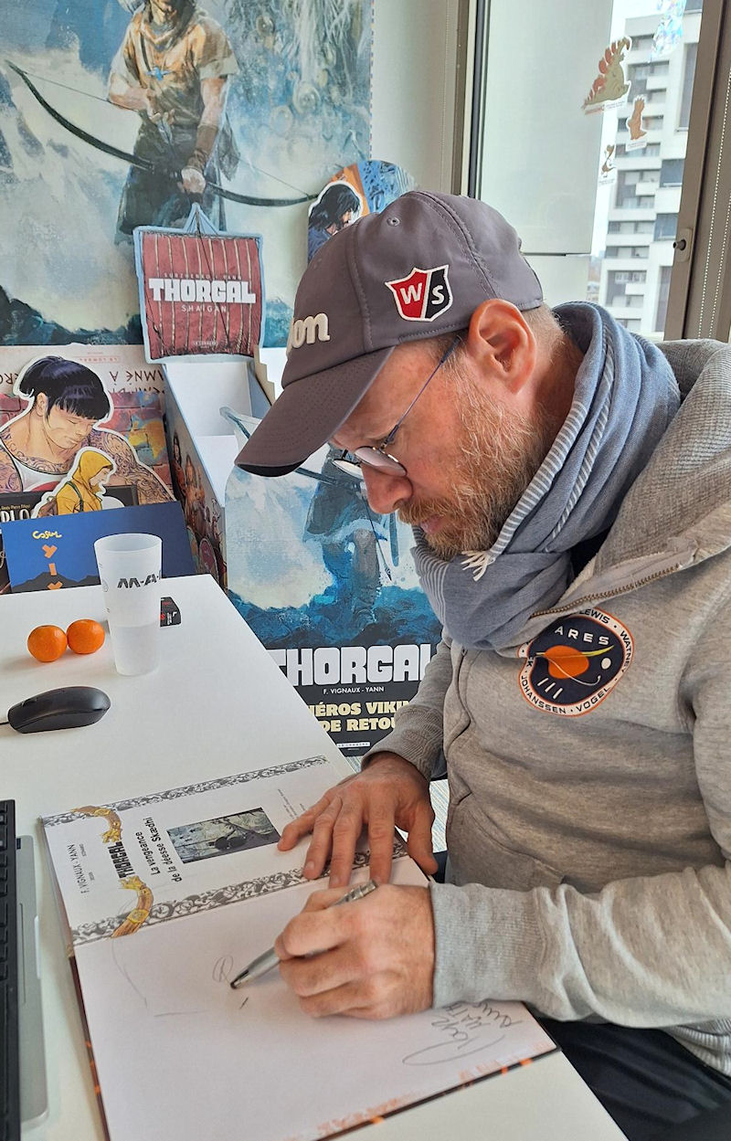 Le dessinateur Fred Vignaux est passé ces jours-ci dans les locaux du Lombard pour y dédicacer plusieurs albums, notamment ceux qui seront offerts à certains membres assidus du site Thorgal.com !