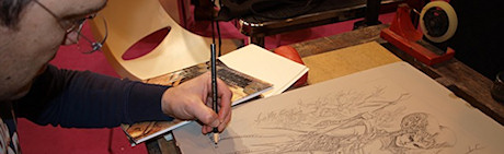 Présent au le Salon du livre de Paris pour la promo de « La sentence des Walkyries », le dessinateur Giulio de Vita a réalisé une lithographie en direct, grâce à un dessin sur pierre lithographique imprimé en 10 exemplaires seulement.
