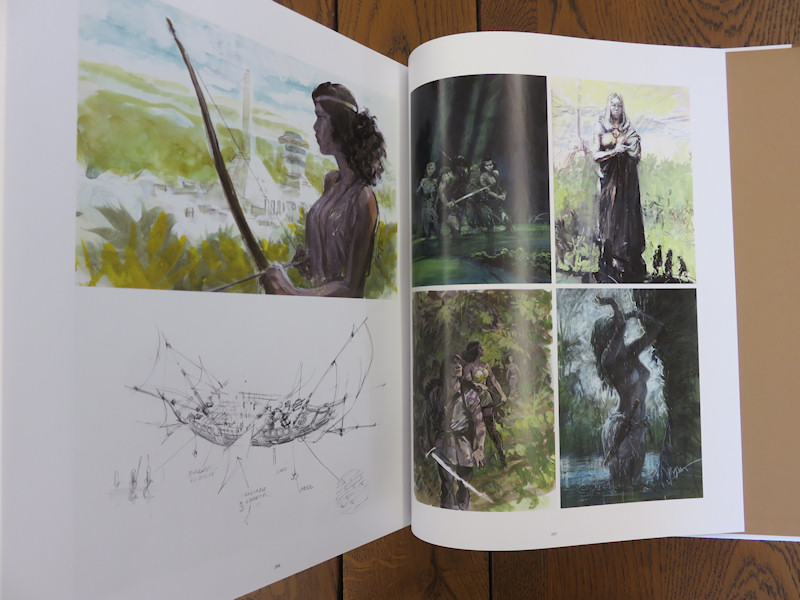 Le livre est grand, lourd, doux et agréable au toucher. Mmh… Il y a de l’amour là-dedans. La maquette est comme toujours réalisée par Piotr Rosinski. Pour cet album qui se tourne essentiellement vers le périple au pays Qâ, on retrouve une belle illustration aperçue il y a une vingtaine d’années en couverture d’une intégrale du cycle de Qâ au Lombard.