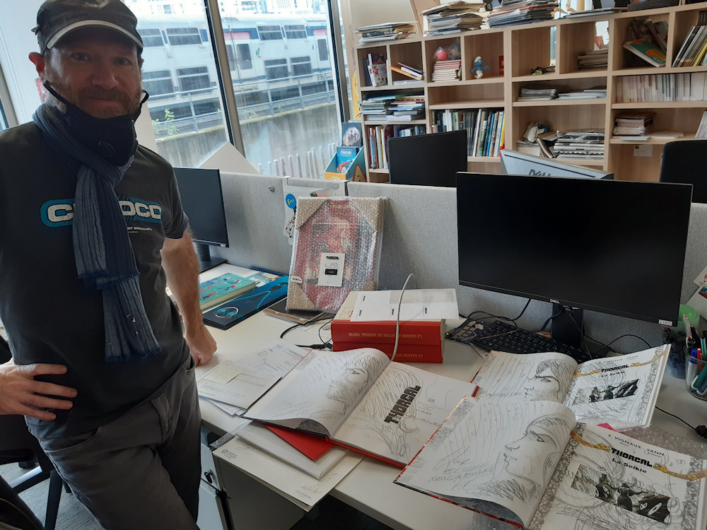 Fred Vignaux était dans les locaux du Lombard, cette semaine. Il avait sous le bras quelques beaux albums dédicacés, destinés aux gagnants de notre concours annuel « Le cercle de pierres » !