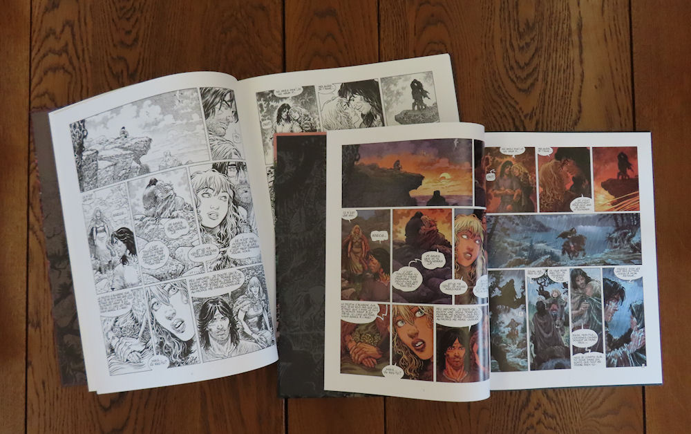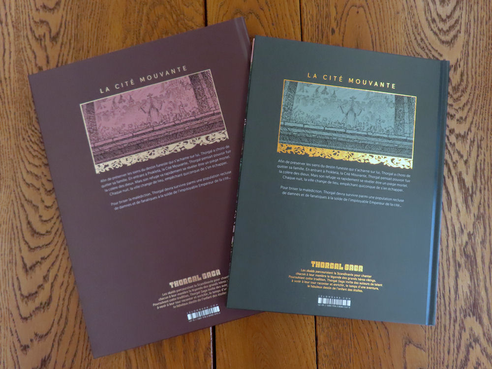 Deux versions de l’album « La cité mouvante » vous sont proposées, et chacune a des atouts ! L’édition prestige en noir et blanc vous est présentée en images sur Thorgal.com avec son format généreux, son frontispice et son cahier graphique exclusif. En face, l’édition classique en couleurs profite de la belle osmose entre le dessin d’Aouamri et les couleurs de Tatti. Elle est aussi moins chère (21€95 contre 35€90). A vous de choisir votre version préférée de ce nouveau Thorgal Saga !