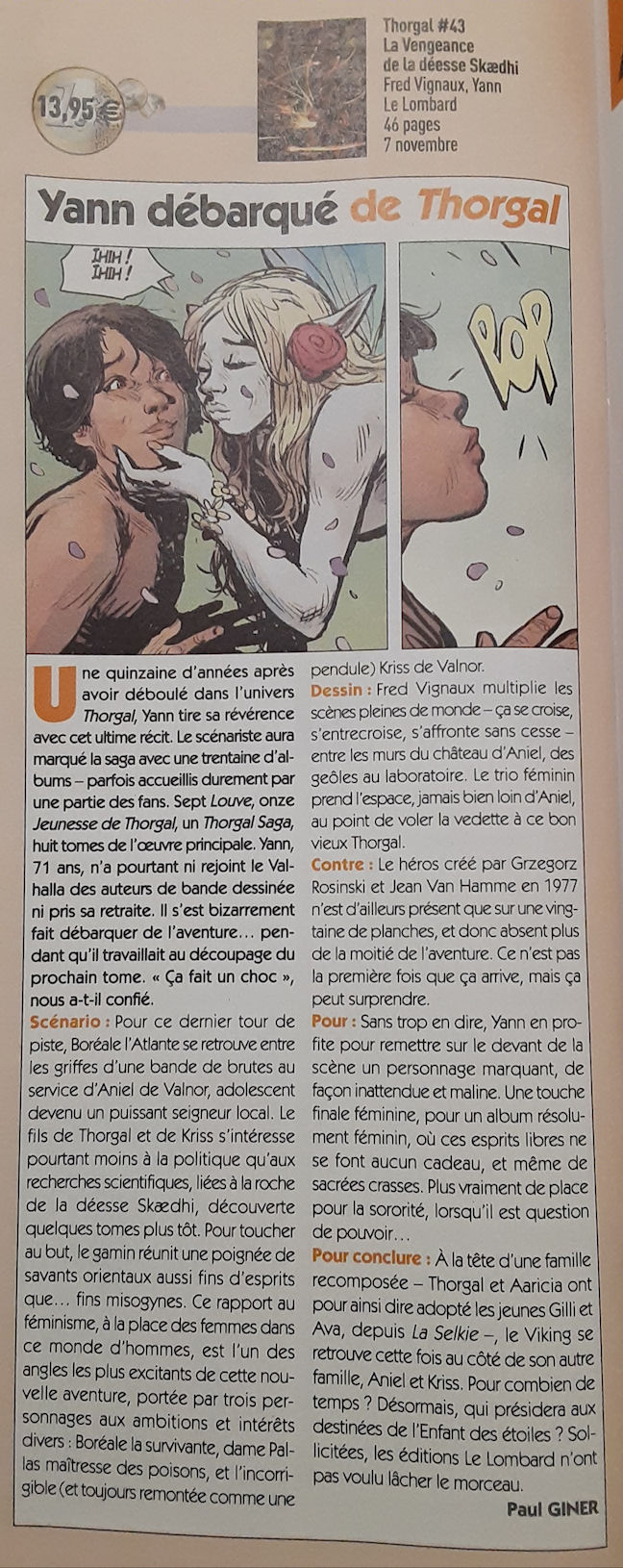 Moi ce qui me dérange le plus, ce n’est pas que Yann ait été viré, c’est le temps que le Lombard a pris pour se décider. Yann a écrit 30 albums de Thorgal et ses Mondes !