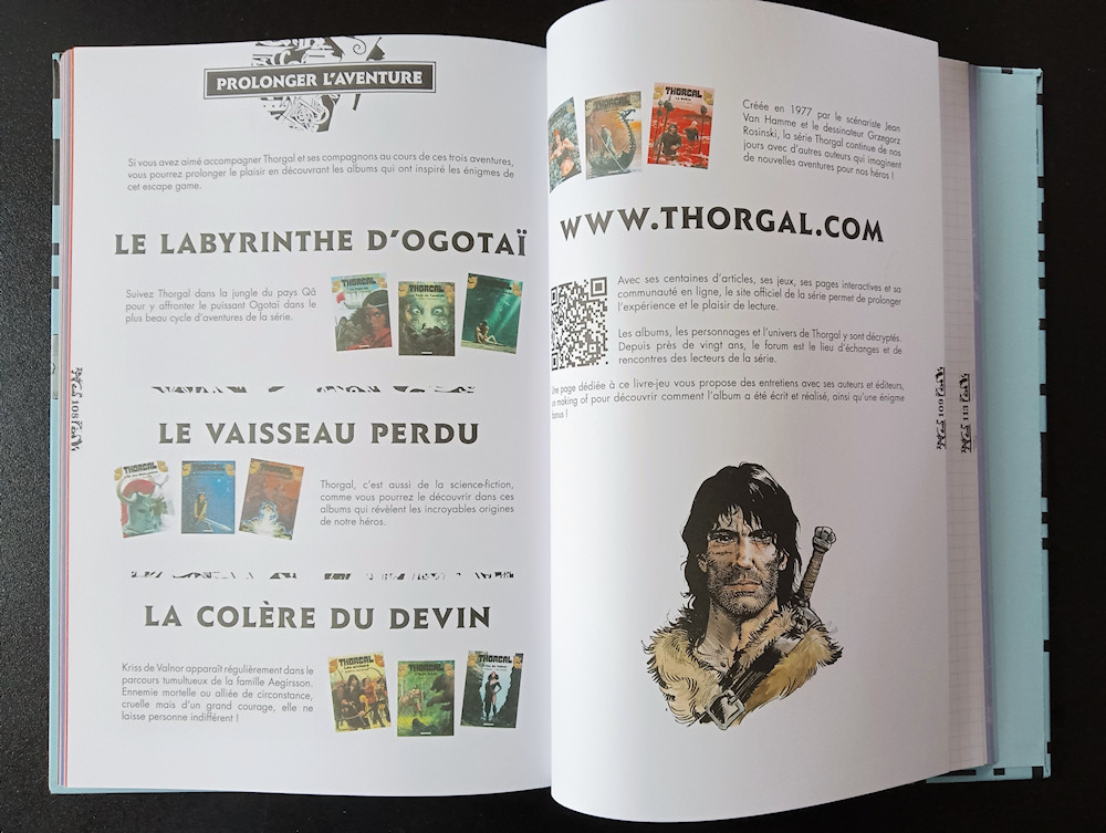 On parle de l’intégration à l’univers thorgalien, mais j’espère aussi réussir à intéresser les non-lecteurs de la série. Le chapitre qui présente les personnages et les albums, à la fin du livre, participe à cette envie. J’ai essayé d’adapter les textes pour ceux qui ne connaissent pas du tout cet univers, avec quelques paragraphes d’introduction qui plongent les joueurs au plus vite dans la mêlée.