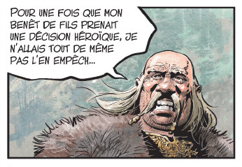 J’aurais trouvé assez sympa, d’ailleurs, que cette série en profite pour montrer que Thorgal participe à sa propre misanthropie, et que les Vikings ne sont pas les seuls responsables.De la même façon, Gandalf a toujours été pour moi un roi plutôt solide. Ignoble, cruel, haï, mais efficace et reconnu. Un meneur.