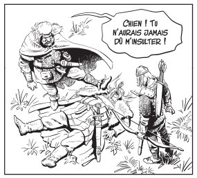 C’est plutôt l’idée que je me fais du peuple de Thorgal et Aaricia, qui assassine 100 ou 150 personnes venues des villages voisins. Ca me gêne un peu. Bon, on a déjà vu un peu ça avec Wor-le-magnifique dans l’album « Louve », mais quand même, ça ne me plaît pas plus que ça.