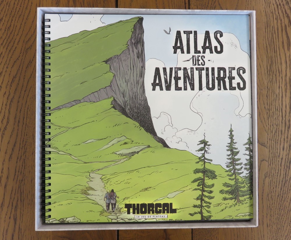 Vient ensuite l’Atlas des aventures. Il est superbe, magnifique. Il a l’air costaud. Le plastique thermoformé de la boîte est même prévu pour accueillir la reliure métallique de l’Atlas. C’est parfait.