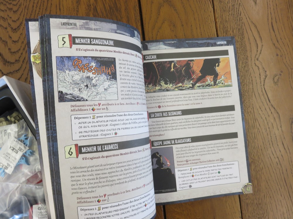 Trêve de plaisanterie, un gaillard de TricTrac (le forum de jeu où je traine pas mal mes sandales) a démarré une partie et fait quelques photos, c’est par ici et ça a déjà de la gueule. Le livret de récit avec quelques cases de la BD, ça semble bien immersif.