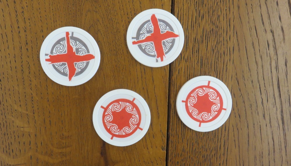 On a aussi des jetons type poker. Ils sont gros et lourds ! Il y a une croix dessus ; pour indiquer la position du trésor ?
