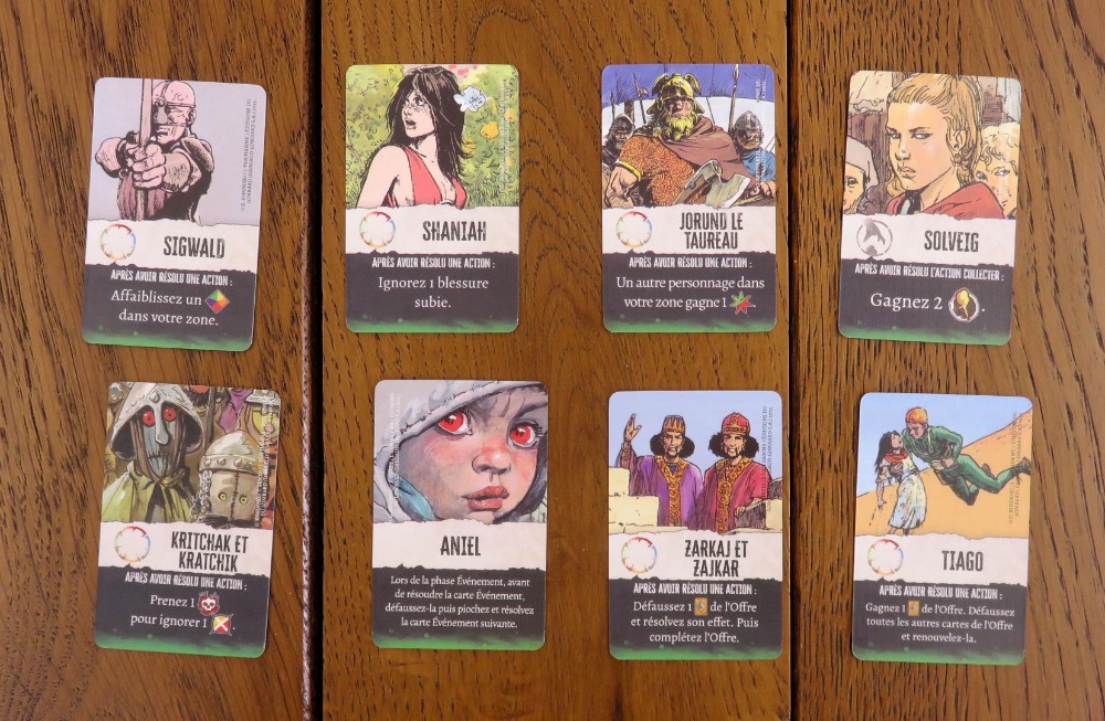 Et encore un ajout : les cartes de Compagnons. Elles étaient offertes aux souscripteurs qui s’étaient préinscrits à la campagne de financement. Le design n’est pas extraordinaire mais ça fait plaisir de revoir ces personnages tant aimés.