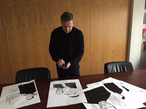 Sur le compte Twitter de François Boucq, on peut découvrir le dessinateur en pleine réflexion sur la future couverture de l’album 5.