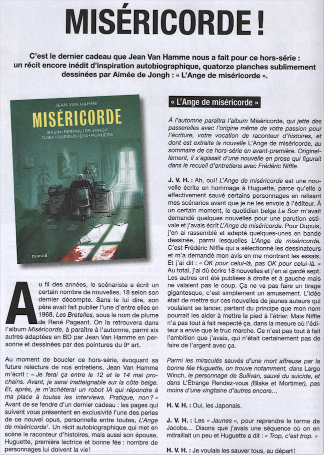 Voici ce que dit le couple Van Hamme à propos de « L’Ange de miséricorde » et de l’album qui contiendra 7 nouvelles illustrées par 7 dessinateurs :