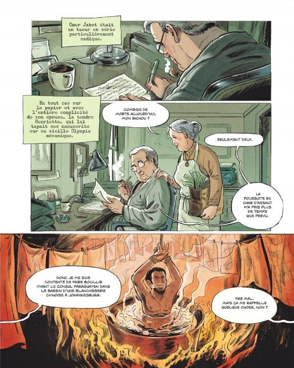 On commence ainsi par faire connaissance avec un auteur débonnaire de romans de gare, dont les personnages se veulent tous plus sadiques les uns que les autres. Mais attention, sa femme veille au grain et n’est pas aussi effacée qu’elle en l’air. Au final, dans ce récit dessiné par Aimée de Jongh (Jours de sable, Soixante Printemps en hiver), le bonhomme tombera de haut.