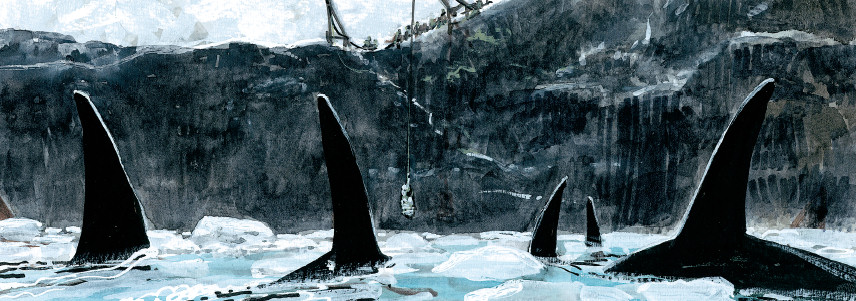 Il y a 9 ans, j’avais peu de matière pour illustrer. Du coup j’avais « emprunté » (dans une revue ? Sais plus) les images étape par étape d’une case de la série Aquablue, par Cailleteau et Siro, chez Delcourt.