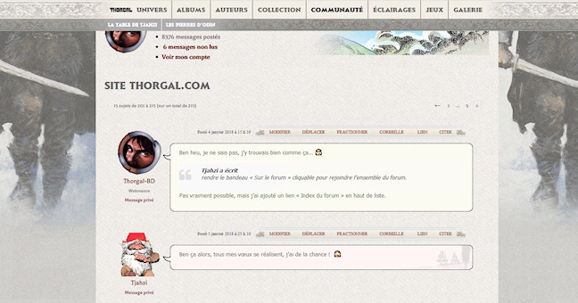 thorgal-bdWebmestre Ah oui mais allez-y, si vous avez des envies ou des idées, notamment pour le forum, profitez de ce moment où j’ai de la motivation pour bricoler.