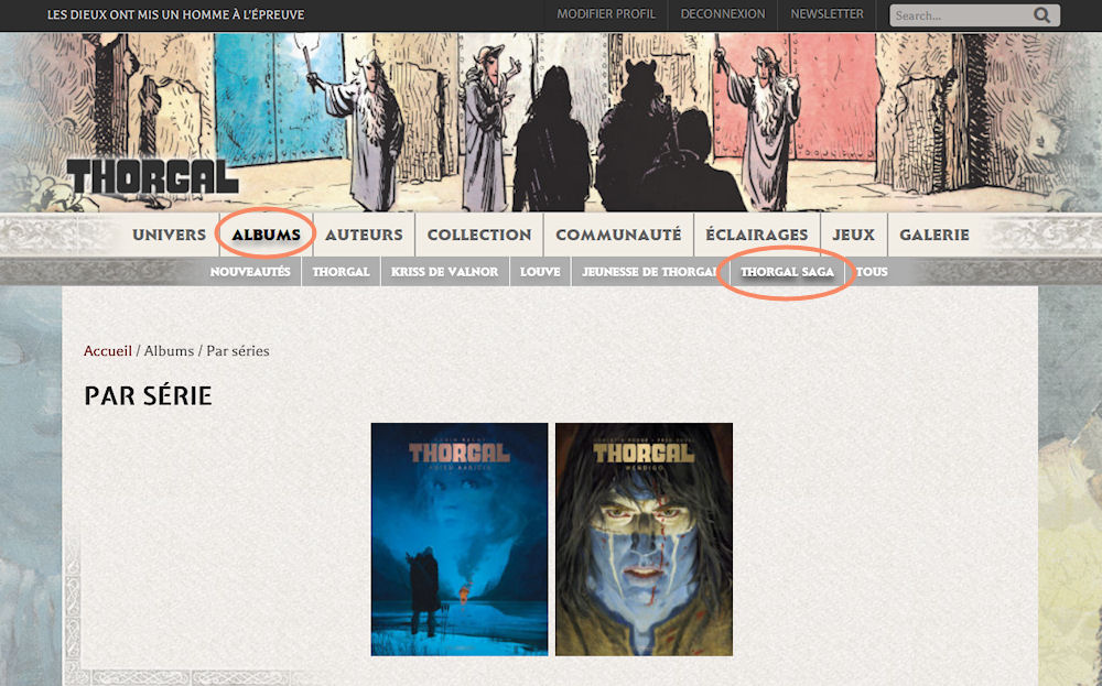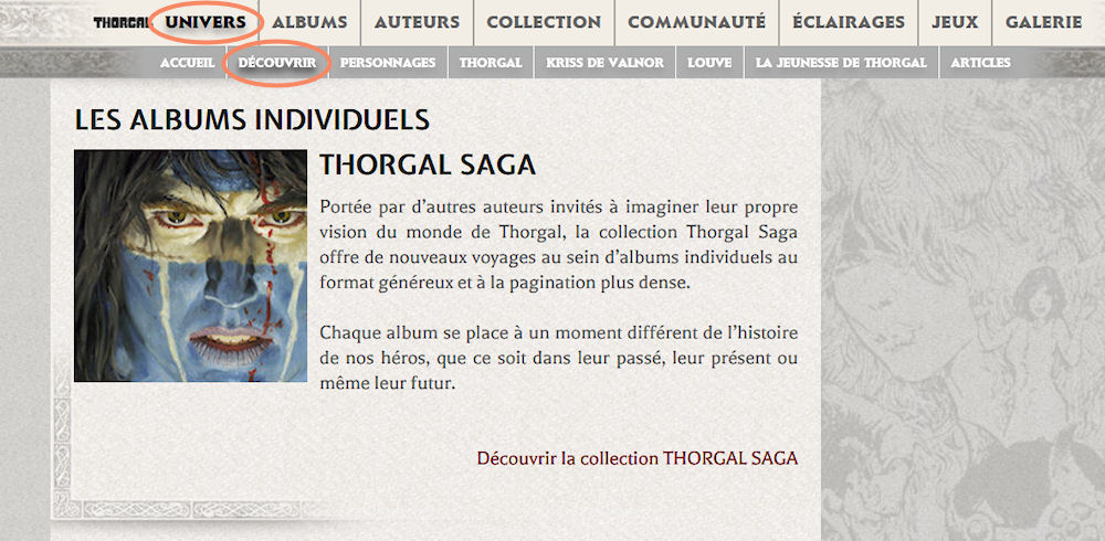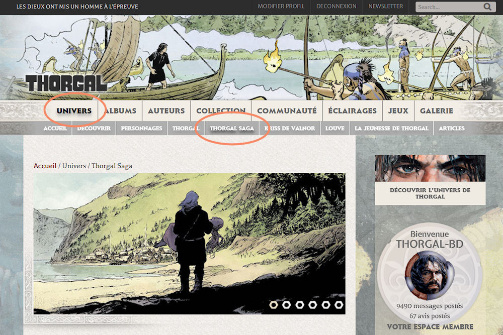 Toujours dans « Univers », on a même désormais un onglet « Thorgal Saga » avec l’essentiel.