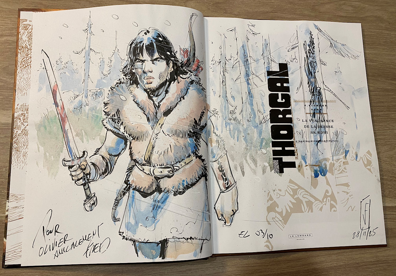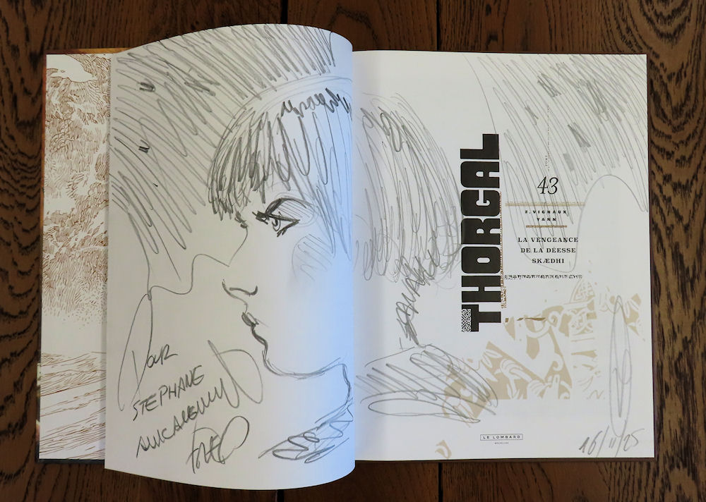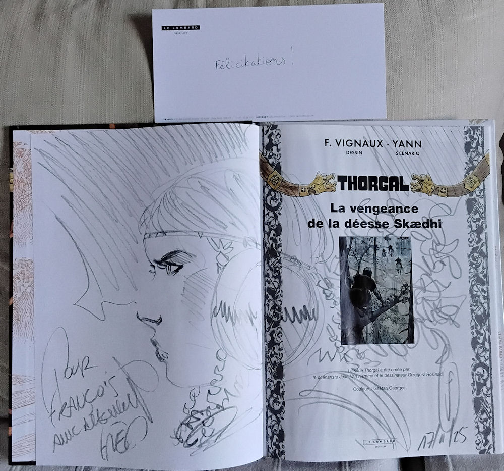 Suite à ma rencontre avec Fred Vignaux (qui nous lit souvent en rigolant à ce sujet) ce samedi, voir sujet « Fred Vignaux », il ne m’a pas confié le nom du nouveau scénariste mais m’a bien confirmé qu’il était sur le prochain Thorgal T44 depuis longtemps puisque Fred lui-même y travaille depuis le mois de Juin 2025 !