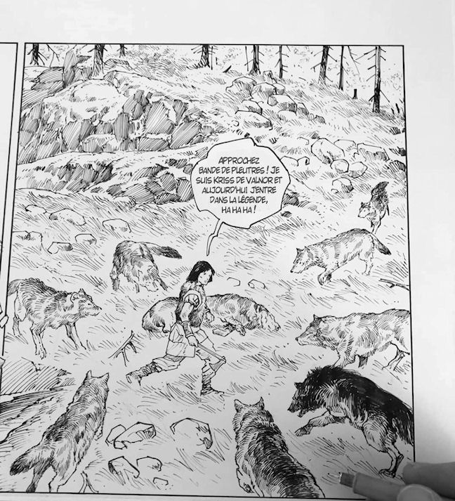 – Il a d’ores et déjà signé pour 3 mini séries chez Oxymore donc son Thorgal Saga sera continué en fonction de ça, sur 90/95 planches, il en a déjà réalisé 33.