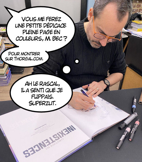 Tu vas lui demander un Thorgal en dédicace sur l’album Inexistences ?