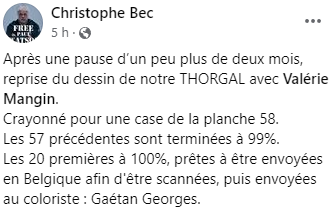 Merci Patrice… sous ce post FB, Christophe Bec a annoncé qu’il faudrait patienter 3 ou 4 ans avant de voir l’album !