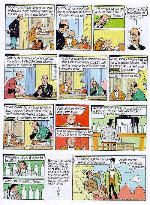 Pour finir, je découvre Bob et Bobette grâce au gimmick de Ralph. En voici une planche que j’espère représentative. Qui a lu Bob et Bobette ? Je ne sais pas pourquoi, je m’étais mis en tête que ça ressemblerait à Bib et Zette mais en fait pas du tout. Ça me fait plus penser à Blake & Mortimer.