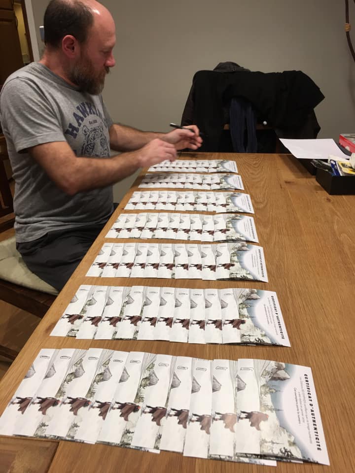 Séance de signatures hier avec Frederic Vignaux sur les tirés à part et les certificats de Kriss de Valnor.