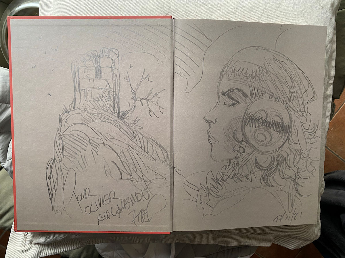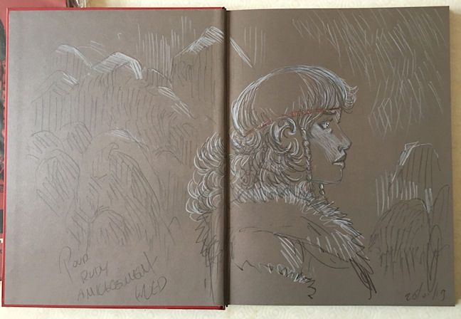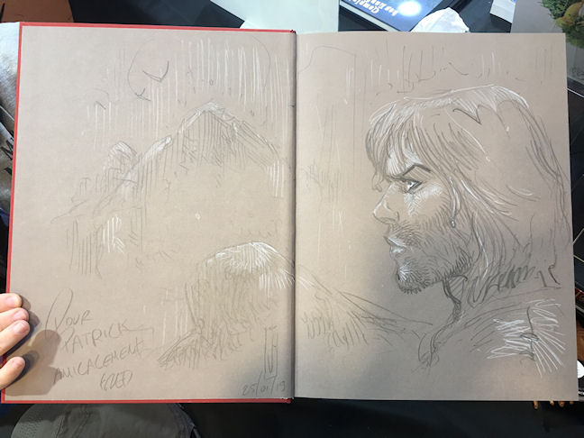 Je préfère la dédicace de Kriss de Valnor à celle de Thorgal. Chez lui, il y a des choses qui clochent encore dans les proportions du visage. Et surtout, plus de sourcils en pointe, même chez Kriss… please Fred…