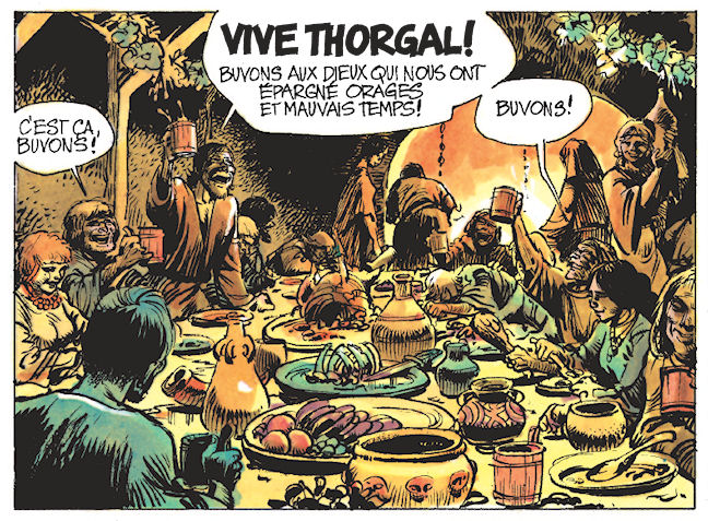 Les éditions Le lombard pourraient organiser une journée conférence sur l’historique de Thorgal, sa naissance, la rencontre de Rosinski  et Van Hamme, l’histoire, le développement des personnages, les choix du et des scénaristes, les directions souhaitées puis abandonnées, une exposition de dessins, de planches originales, de scenarios. Le tout servi bien frais avec un bon repas viking, où les filles à demi vêtues danseraient sur les tables, tout en renversant nos verres, où un concours de tir à l’arc serait organisé et le vainqueur aurait droit à une bise de la gardienne des clefs, où les divinités seraient remerciées, où tout ne serait que joie et émerveillement, pour finir en apothéose sur un feu d’artifice de dédicaces et de signatures.