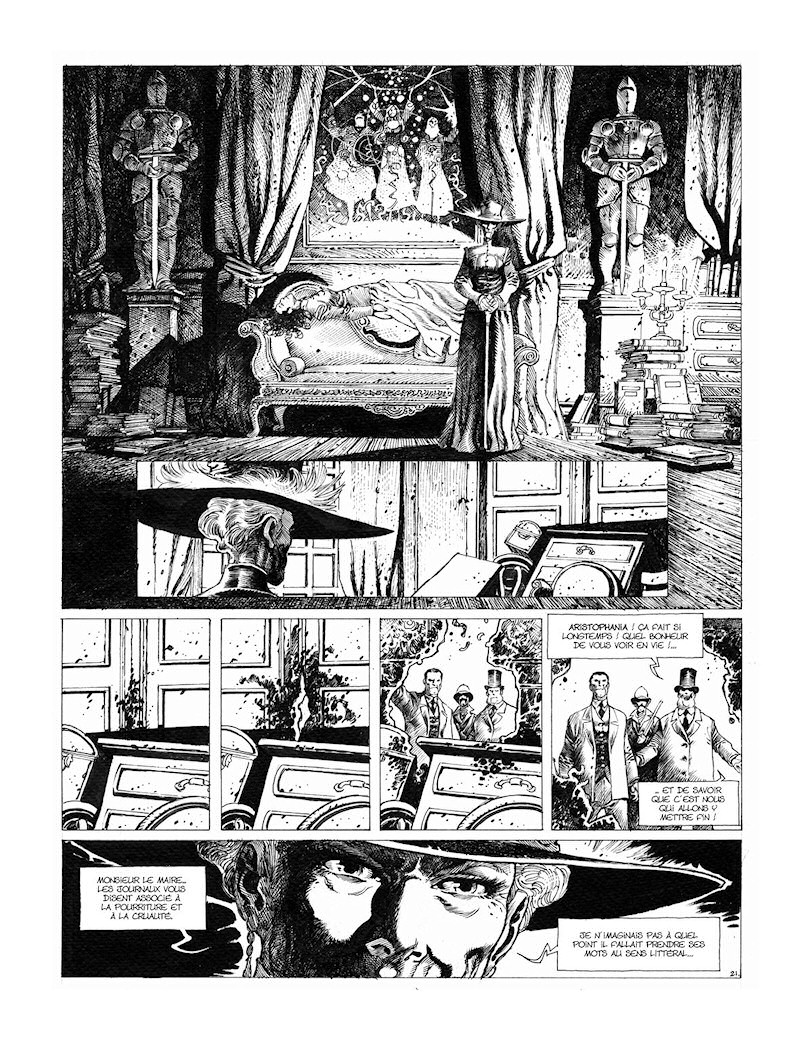 A la rentrée, j’ai le tome 5 d’Undertaker et Aristophania 2. Rien d’autre car ce n’est déjà pas mal mais je continue à écrire. Le tome 2 du Château est en cours, le scénario est fini. Il sortira dans un peu plus d’un an. L’édition luxe comportera mes storyboards.