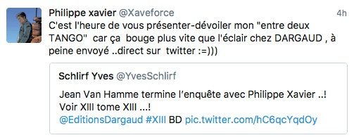 Génération BD se base sur deux tweets envoyés par Yves Schlirf et Philippe Xavier pour annoncer la nouvelle.