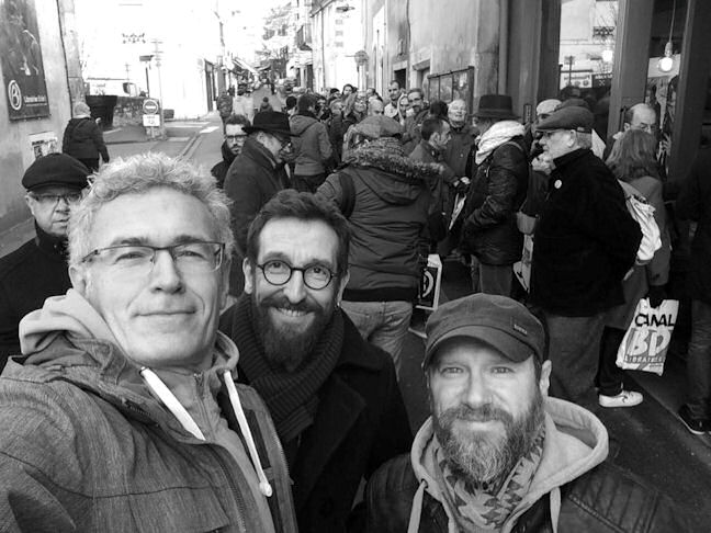 Seconde photo qui date de décembre dernier, avant une séance de dédicaces à la Librairie Bulle! au Mans. Les auteurs présents sont de gauche à droite : Philippe Xavier, Ralph Meyer et Fred Vignaux.